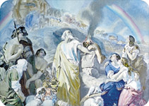 Când Noe și familia sa au ieșit din corabie, L-au recunoscut pe Dumnezeu și I-au oferit o jertfă; și Dumnezeu a garantat prin curcubeu că nu va mai distruge omenirea prin potop. Înainte nu mai fusese văzut curcubeul, pentru motivul dat în Biblie, că nu existase ploaie. Mai mult, razele Soarelui nu ajunseseră direct pe Pământ, ci numai prin bolta de apă, având un efect foarte asemănător cu cel de seră.